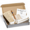 Boite comprenant des tonneaux, des baquets et les pièces découpées au laser pour assembler les canots de sauvetage.