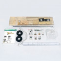 DW HOBBY aggiunge ruote in scala, tiranti alari in alluminio pre-piegati e forati, tubi di carbonio per le longherine e un set completo di minuteria. Il risultato è un modello fedele, robusto e leggero.