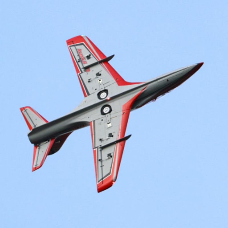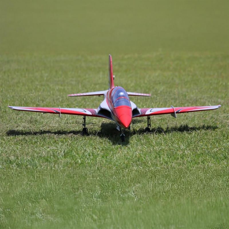 La fusoliera, realizzata in schiuma EPO ad alta densità, garantisce robustezza e leggerezza, mentre la presa d’aria ottimizzata e l’architettura tecnica (ventola a 12 pale da 80 mm + motore inrunner 3658-2150 KV + regolatore da 100 A con inversione di spinta) offrono una potenza eccezionale e un suono realistico, simile a quello di una vera turbina.