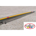 Pour améliorer la durabilité et la performance, une circulation d’air est intégrée au fuselage, permettant une ventilation efficace des équipements électroniques. L’accès à la batterie se fait par un cockpit amovible, tandis qu’une plaque en contreplaqué démontable offre un accès pratique au récepteur et à l’emplacement prévu pour un gyro stabilisateur de vol optionnel, situé près du centre de gravité (CG).