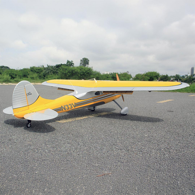 Réplique à l'échelle 1/5 du légendaire Cessna 195 à moteur radial, ce taildragger classique possède un charme vintage tout en offrant des performances de vol modernes.