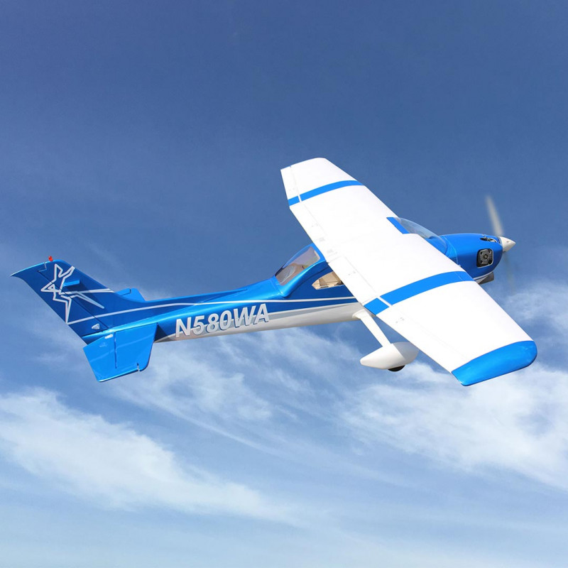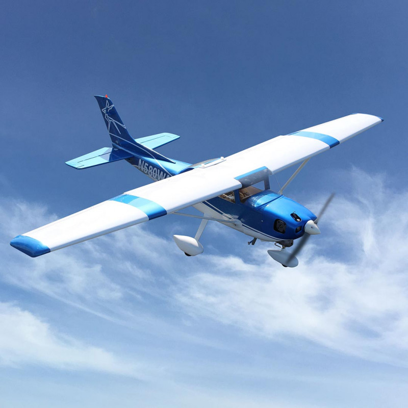 Plus de details En stock, disponible immédiatementAvion thermique radiocommandé Cessna Skylane T 182 46-55 BLEU ARF