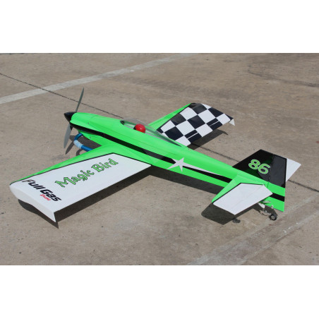 Capable de voltiger et d’effectuer des passages à haute vitesse, le Magic Bird est l’avion de détente par excellence, ses lignes tendues et sa magnifique décoration de course haute visibilité lui donnent vraiment un look de racer.