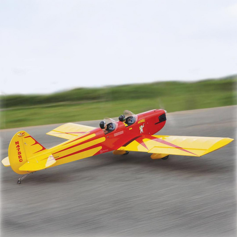 Modèle pré-construit et décoré (ARF). La boîte contient tous les accessoires nécessaires à la finition. Le buste de pilote représenté sur la photo n'est pas fourni d'origine. Le moteur, l'hélice et la radiocommande doivent être acquis séparément (voir produits complémentaires).