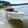 Questo modello di barca in legno può essere trasformato in una barca radiocomandata aggiungendo le attrezzature adatte alla navigazione: motore, regolatore di velocità, servo di direzione, batteria e caricabatterie.