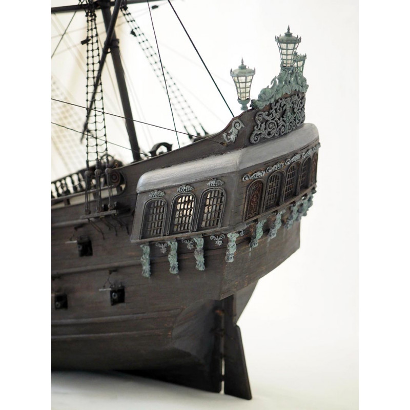 Lo scafo è realizzato in doppio bordo in legno, garantendo una finitura curata. Le decorazioni metalliche, le lanterne, i cannoni e gli elementi del ponte rafforzano il realismo del modello. L'attrezzatura completa con pennoni, alberi e cavi consente di ottenere una nave fedele all'originale.