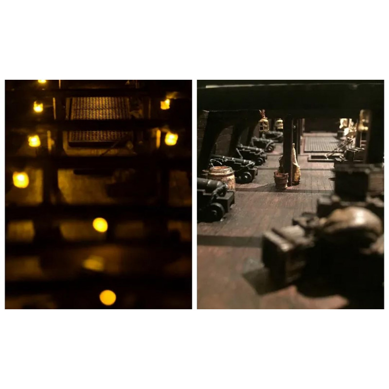 Questa maquette Black Pearl ZHL 1/50 offre una riproduzione completa con interni visibili e elementi decorativi aggiuntivi. I ponti sono dettagliati, le cabine sono arredate e gli accessori inclusi consentono di ottenere un risultato realistico una volta completato il modello.
