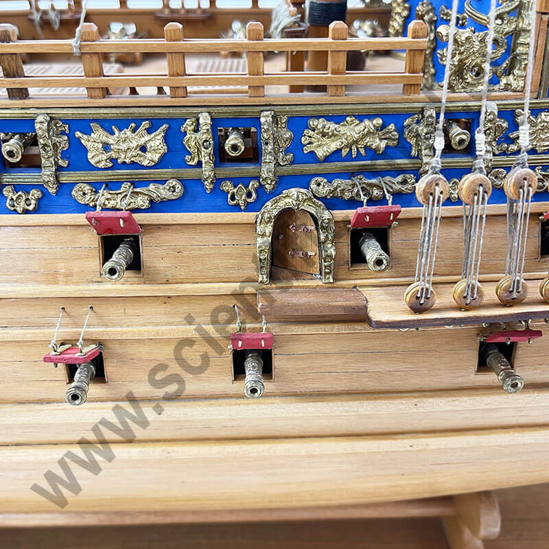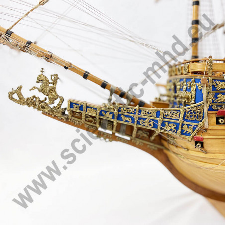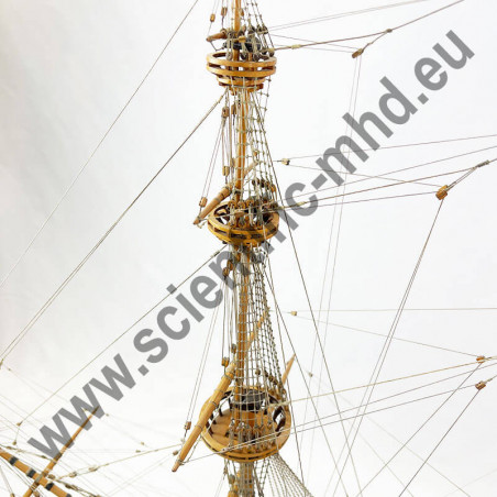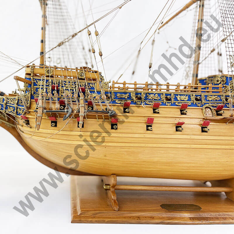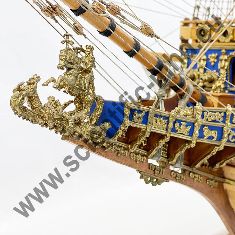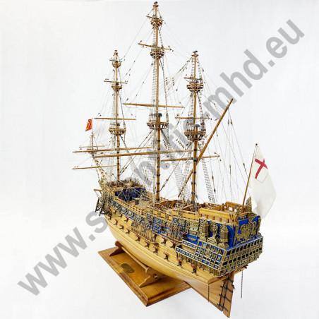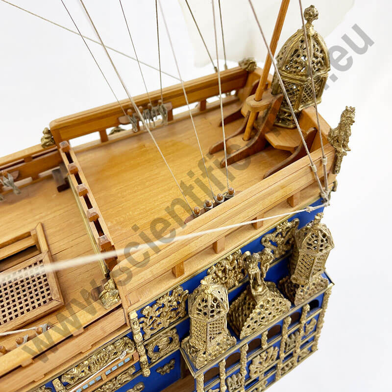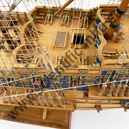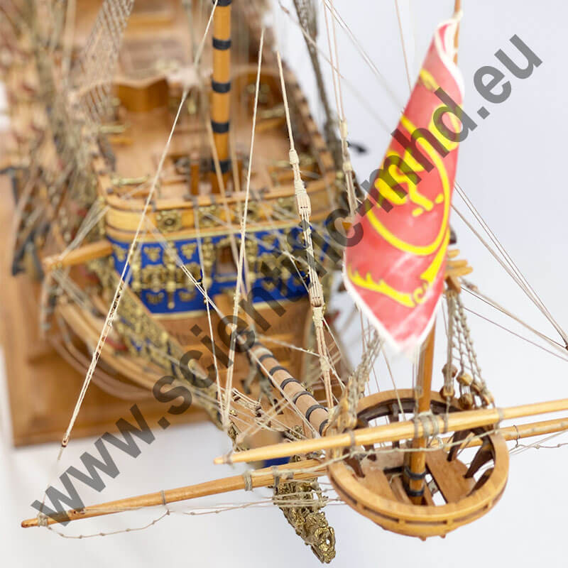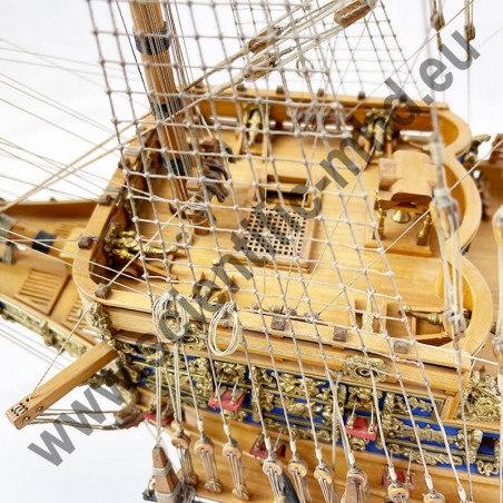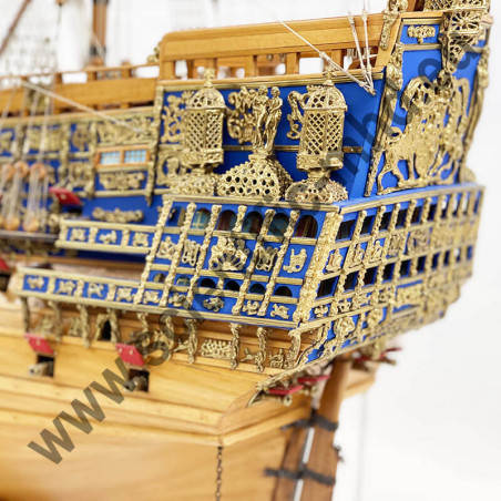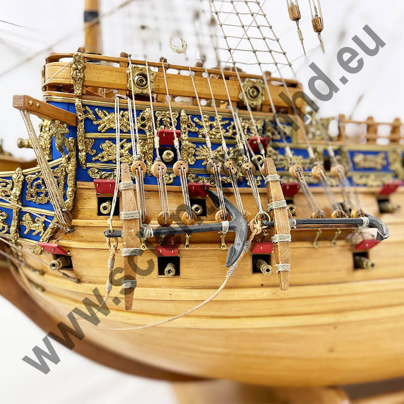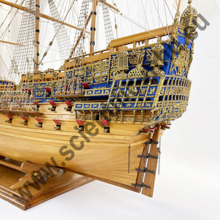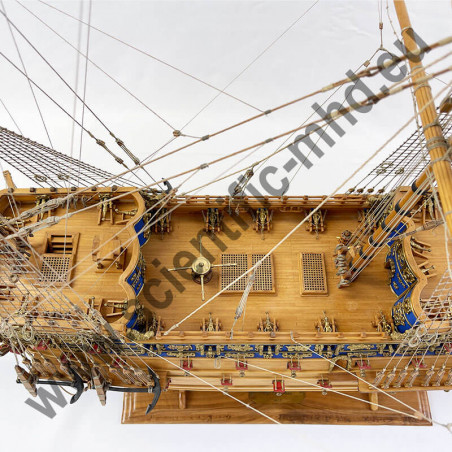 Il modello realizzato da Sergal è una riproduzione unica e molto fedele. Costruzione per chiglia, ordinate e doppio fasciame, pezzi tagliati al laser per un perfetto adattamento delle parti. La sua bellissima sovrastruttura comprende oltre 700 pezzi di ferramenta fusi in bronzo e 102 cannoni fusi, tappi di montone e carrucole in legno, bandiere in seta stampata. Piani di costruzione dettagliati in 7 fogli.