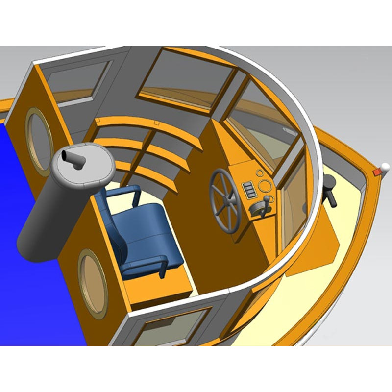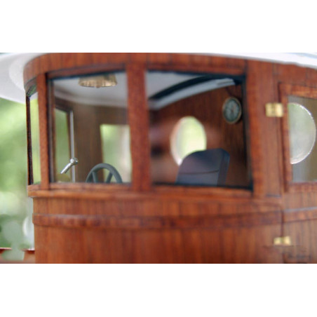 Le parti di ferramenta stampate in resina 3D, gli elementi in ottone foto-incisi e i vetri trasparenti migliorano la finitura di questa barca RC da montare.