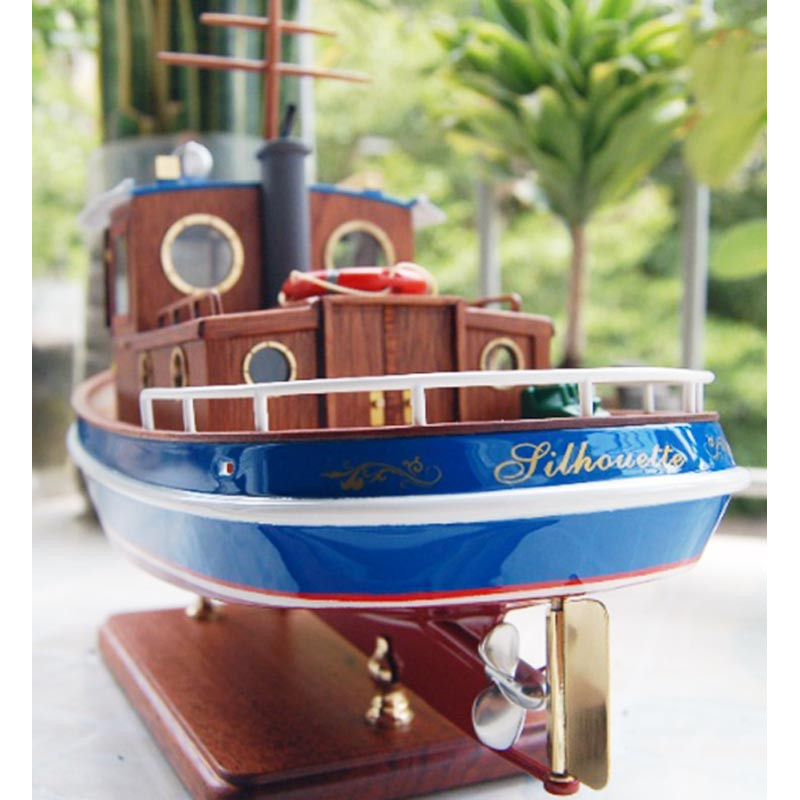 Il kit include anche il motore elettrico e la trasmissione, consentendo di trasformare facilmente questo kit modello di barca in legno in una barca radiocomandata.