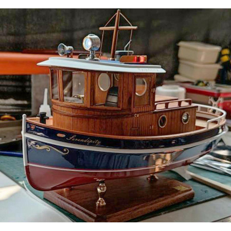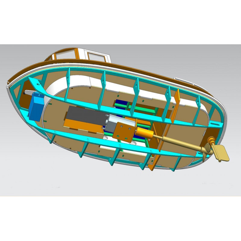 Basta aggiungere una radio a 2 canali, un micro servo, un regolatore e una batteria LiPo 2S 1300 mAh. Trovo che questo mini rimorchiatore RC sia perfetto per iniziare o per completare una collezione di modelli di barche originali.