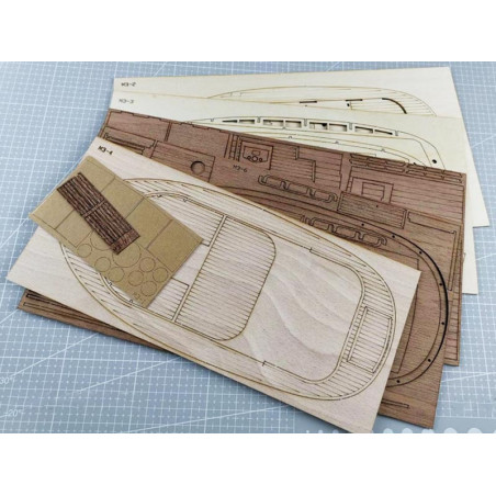 Questo kit barca in legno da assemblare offre una struttura in legno tagliata al laser, ideale per gli appassionati di modellismo navale radiocomandato o di modelli statici.
