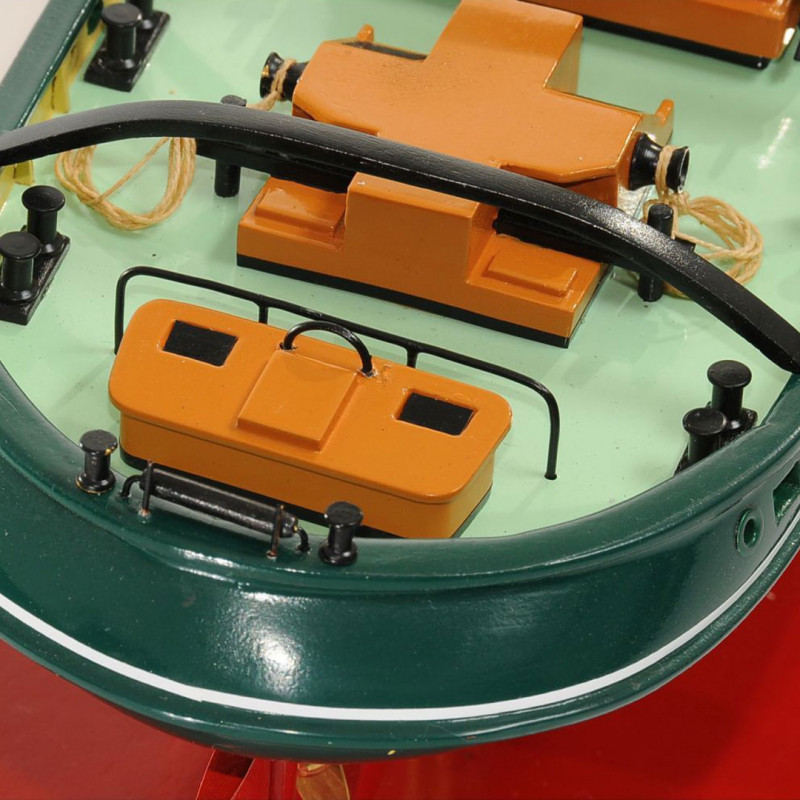 Remorqueur de haute mer, mis en service en 1963, d’un tonnage brut de 1539 tonnes, construit par Smit’s Schee Pswerten à Kinderdijk (Hollande). Longueur 77.50 m, largeur 12.35 m, tirant d’eau 6.90 m. Il est équipé de 2 chaloupes en fibre de verre pouvant recevoir 40 hommes. Coque moulée en plastique ABS, pont et superstructure en bois. Accastillages inclus dans la boite. Propulsion par moteur électrique. Ensemble R/C 2 voies. Equipement conseillé (non livré) : Moteur classe 550, Variateur de vitesse électronique, batterie et radio.