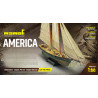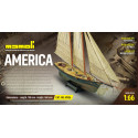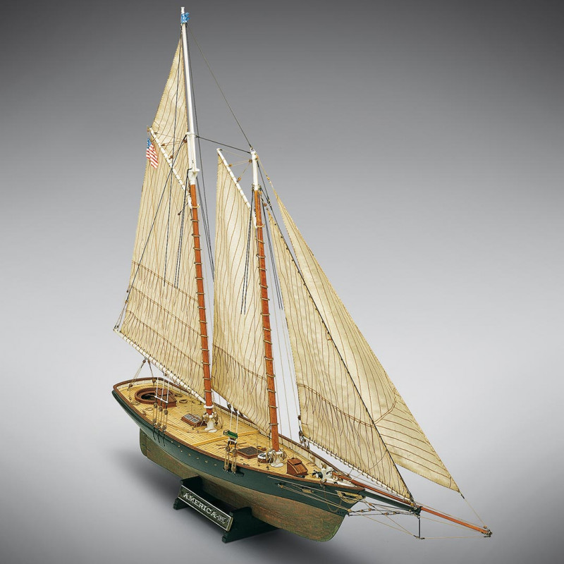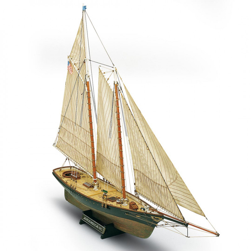 Le schooner America fut conçu par Gorge Steers et construit dans le chantier de William Brown en 1851. Son nom est encore le plus important et célèbre dans l'histoire du yachting mondial. L'America, sous les ordres de Dick Brown, pilote de New York, leva l'ancre en Juin 1851 pour l'Angleterre pour participer à la régate qui devait avoir lieu le 22 Août sur le parcours établi autour de l'île de Wight, sans aucune compensation pour la différence de tonnage ou de gréement. Prix de la compétition une coupe de 100 guinées. L'America remporta une victoire éclatante sur l'escadron anglais. A son apparition, l'America présentait des nouveautés remarquables dans la forme de la coque surtout en ce qui concerne les lignes d'eau et de la section, qui était beaucoup plus reculée par rapport aux coques de cette époque. Elle avait en outre une basse calaison, finesse de lignes, déplacement léger et une nouvelle coupe des voiles considérablement plus maigres et exécutées avec un tissu de coton.