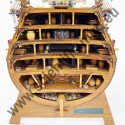 La disposizione consente di osservare tutti i ponti interni (5), la stiva, senza dimenticare il ponte principale e i suoi allestimenti, con cannoni in bronzo, barili di polvere, palle di cannone, secchi e cordami.