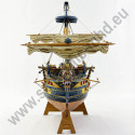 La scatola contiene il doppio fasciame in noce, polene in bronzo nero porpora, cannoni di diversi calibri, accessori in ottone e noce, la figura di prua finemente riprodotta, nonché i piani di costruzione dettagliati con le istruzioni di montaggio.