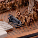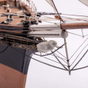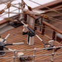La version 2023 de cette maquette possède un nouveau manuel de montage entièrement illustré en couleurs, les roues de pompe de cale sont maintenant en laiton et reprennent exactement les formes caractéristiques de la vraie, baguettes en obechi pout réaliser le pont incluses et une nouvelle planche découpée au laser contenant des échelles et autres détails retravaillés.
