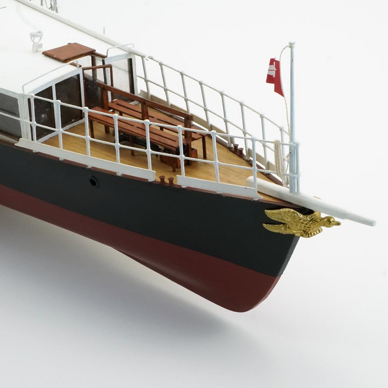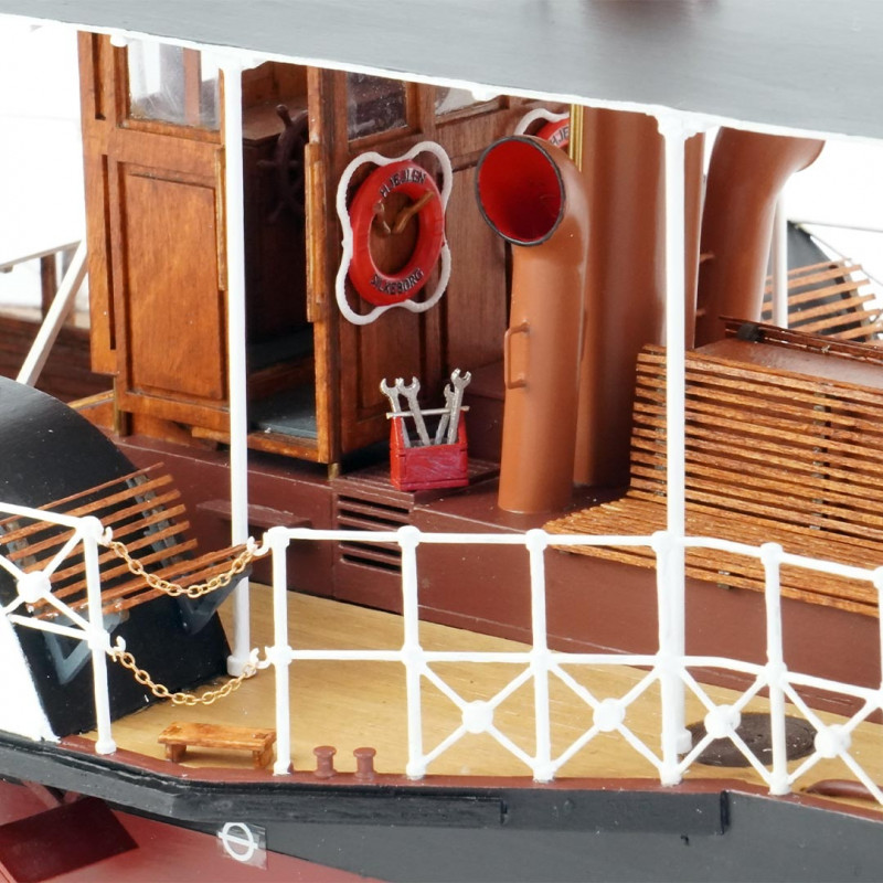 Ce modèle fidèle rend hommage à l’un des plus anciens bateaux à vapeur en service au monde, toujours actif sur les lacs autour de Silkeborg, au Danemark.