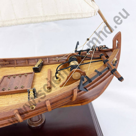 Fabriqués avec les bois de la plus haute qualité, ces bateaux incarnent un réalisme saisissant, créant une symbiose parfaite entre l'art et l'artisanat. Les tonalités riches des bois utilisés ajoutent une dimension chaleureuse à ces chefs-d'œuvre miniatures, faisant écho à l'héritage maritime qu'ils représentent.