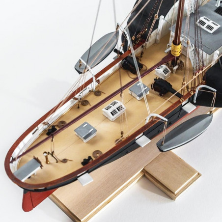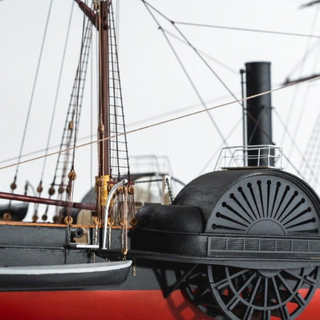 Maquette en bois à monter d'un navire voguant à la voile et à la vapeur.