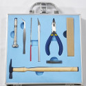 Dans sa valise en aluminium et plastique, vous trouverez les outils indispensables pour débuter dans la maquette en bois