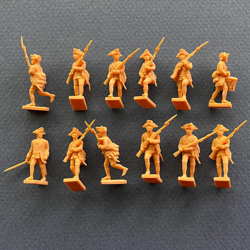 Queste figurine rappresentano le formidabili truppe dell'Assia - ausiliari tedeschi ingaggiati dalla corona britannica durante la guerra d'indipendenza americana. Rinomati per la loro disciplina, precisione e uniformi accattivanti, gli Assia hanno svolto un ruolo chiave in battaglie importanti come White Plains e Fort Washington. Temuto da molti coloni americani, la loro reputazione era sia rispettata che controversa.