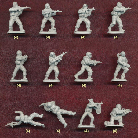 Le scatole di solito contengono diverse decine di miniature con diverse pose (combattimento, marcia, tiro, comando), il che favorisce la creazione di scene realistiche.