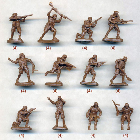 Le scatole di solito contengono diverse decine di miniature con diverse pose (combattimento, marcia, tiro, comando), il che favorisce la creazione di scene realistiche.