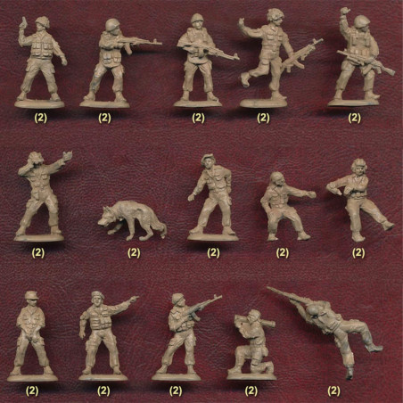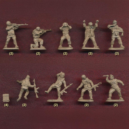 Le scatole di solito contengono diverse decine di miniature con diverse pose (combattimento, marcia, tiro, comando), il che favorisce la creazione di scene realistiche.