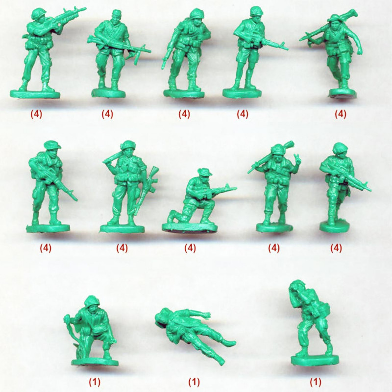 Le scatole contengono generalmente diverse decine di miniature con diverse pose (combattimento, marcia, tiro, comando), favorendo la creazione di scene realistiche.