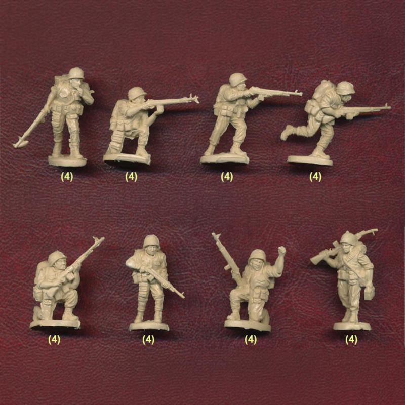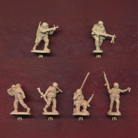 Le scatole di solito contengono diverse decine di miniature con diverse pose (combattimento, marcia, tiro, comando), favorendo la creazione di scene realistiche.