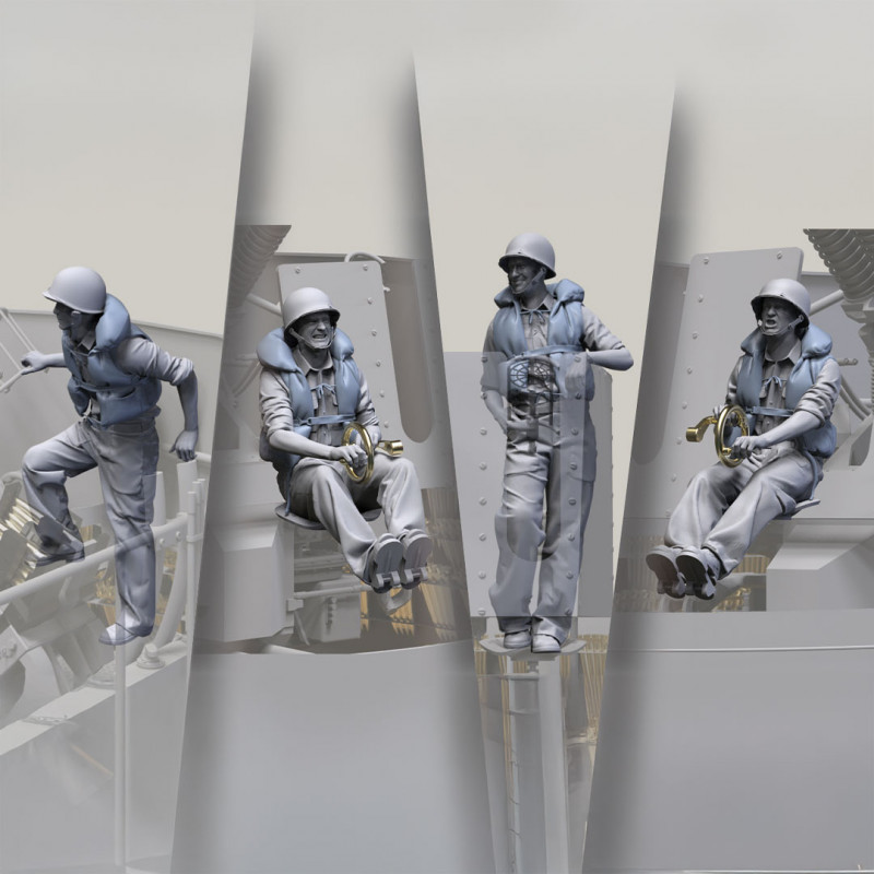 Plus de details En stock, disponible immédiatementFigurine US NAVY 40MM QUAD BOFORS équipage de canon antiaérien avec gilets de sauvetage set 1J 1:35