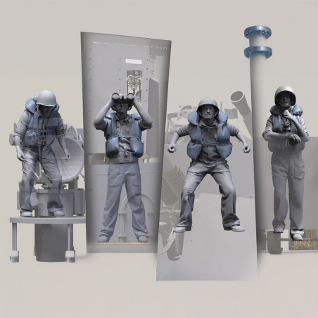 Figurine US NAVY 40MM QUAD BOFORS équipage de canon antiaérien avec gilets de sauvetage set 2J 1:35