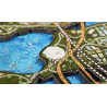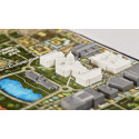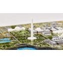 Les bâtiments s'insèrent dans des trous prédécoupés dans un puzzle traditionnel en 2D composé de 1076 pièces qui forment le tracé des rues et des îles de la ville.