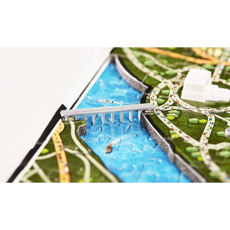 Les puzzles de la collection 4D Cityscape peuvent être considérés comme des puzzles traditionnels dit « Jigsaw » mais ils sont bien plus que cela. Si la base des puzzles est bien une base 2D traditionnelle qui forme le tracé des routes et positionne les monuments de la ville, l’étape finale du processus de construction consiste à placer pièce par pièce, de façon chronologique selon l’année de construction la reproduction en modèles réduits tous les bâtiments emblématiques et les grattes ciels de chaque ville.