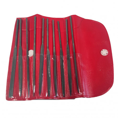 Assortiment de 10 limes fines assorties : Ronde, carrée, triangulaire, de finition, demi-rondes et plates.