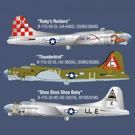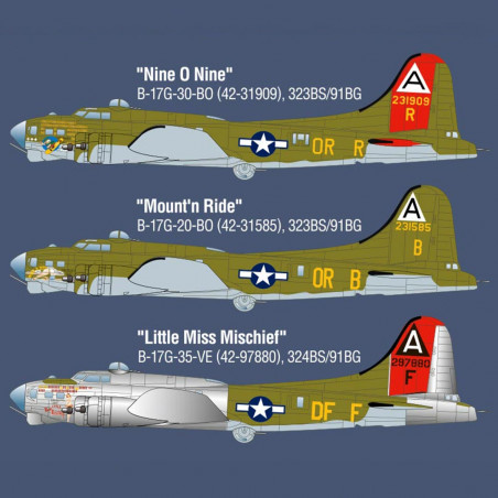 De nombreux B-17 étaient identifiés par leur peinture de guerre appelée également « Nose Art » ce kit vous permet de choisir entre 6 décorations.