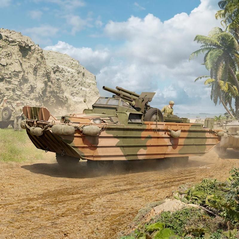 Plus de details En stock, disponible immédiatementMaquette de camion en plastique GMC DUKW-353 avec canon Howitzer 105mm 1:35