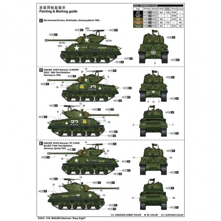 Maquette de Char en plastique M4A3E8 Sherman " Easy Eight" 1:16