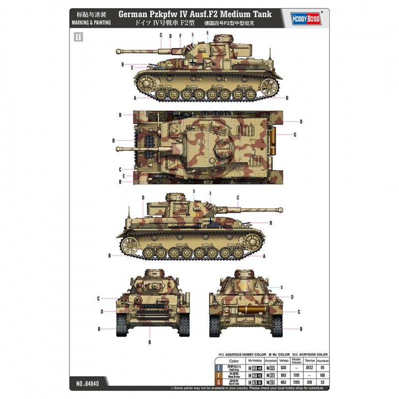 Plus de details En stock, disponible immédiatementMaquette de char en plastique Pzkpfw IV Ausf.F2 Medium Tank 1:48
