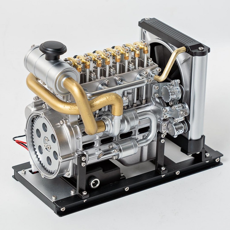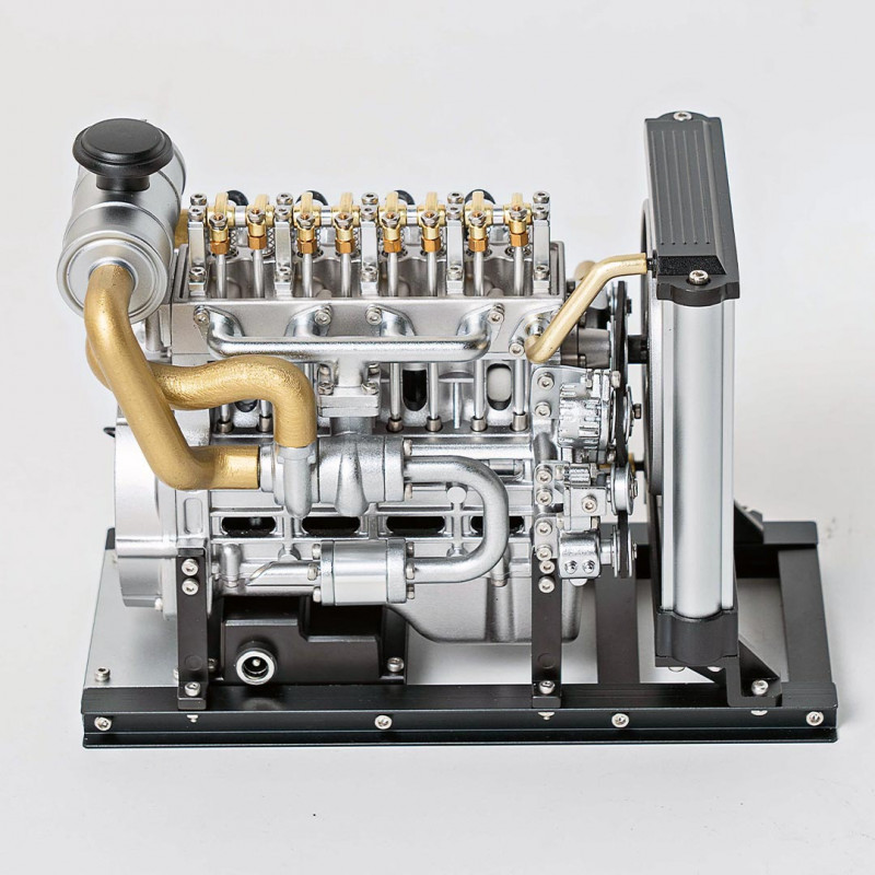 Ce moteur miniature fonctionnel peut être alimenté par un moteur électrique intégré, offrant une expérience réaliste et immersive. Le fonctionnement du moteur est visible pendant tout le cycle d’animation, transformant cette maquette en métal en une reproduction exacte en métal dynamique. À la fois objet décoratif et modèle mécanique simulé, il reproduit avec fidélité le comportement d’un vrai moteur thermique.