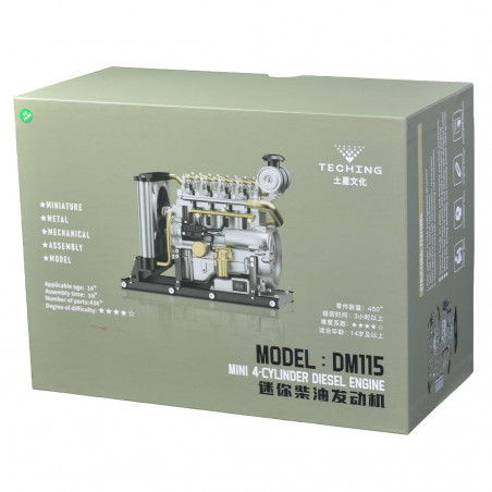 Ce mini moteur diesel 4 cylindres en ligne à soupapes en tête (OHV) séduit par son design soigné et ses pièces en métal de haute qualité. Chaque composant est conçu avec un réalisme remarquable, faisant de cette maquette en métal à monter une véritable introduction au monde de l’ingénierie mécanique, dans un format aussi esthétique que technique.