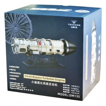 Questo modellino di motore da assemblare è una riproduzione visiva sorprendente ed estremamente fedele all'originale, comprendente tutti gli elementi caratteristici di un vero turbogetto a doppio flusso: ventilatore, core del motore, turbina a bassa pressione, postcombustore, ugello di scarico e scatola degli accessori. Il suo design aperto con tagli visibili consente di osservare l'intero meccanismo in azione.