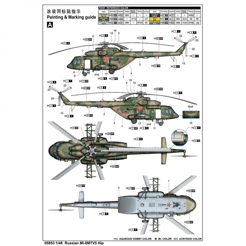 Maquette plastica dell'elicottero russo Mi-8MTV5 Hip 1:48