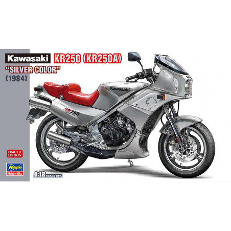 Plus de details En stock, disponible immédiatementMaquette plastica della moto Kawasaki KR250 (KR250A) "Versione Argento" 1984 1:12