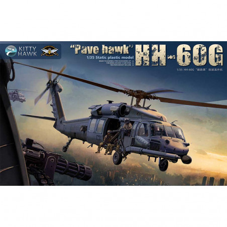 Maquette en plastique à monter de la célèbre marque KITTY HAWK d'hélicoptère HH-60 Pave Hawk avec figurines à l'échelle 1/35.