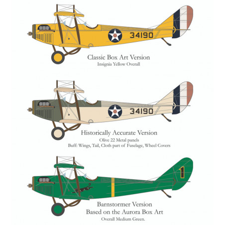 Biplan d’entrainement Américain datant de la première guerre mondiale propulsé par un moteur V8 développant 90cv. Produit en très grande quantité, il inonda le marché des surplus militaires après l’armistice de 1918, il sera alors utilisé pour effectuer de nombreuses tâches variées comme le transport postal ou des spectacles de cascades.