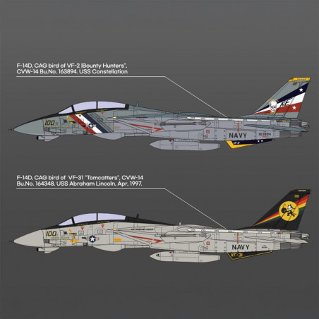 Plus de details En stock, disponible immédiatementMaquette plastique d’avion USN F-14D « VF-2 Bounty Hunters » 1:72