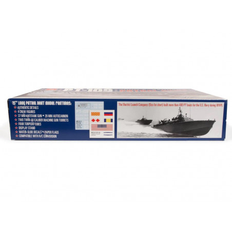Le Patrol Boat à l'échelle 1/64 d'AMT présente le type d'embarcation commandée par John F. Kennedy durant son service pendant la Seconde Guerre mondiale. Un accrochage avec un croiseur japonais se traduira par une épreuve harassante qui vaudra à Kennedy de multiples médailles de reconnaissance.