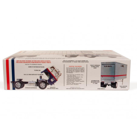 Le kit USPS/Ford C-900 Tractor avec remorque à l'échelle 1/25 d'AMT est un excellent projet pour tout modéliste expérimenté de gros porteurs. Ajoutez-le à votre collection dès aujourd'hui !